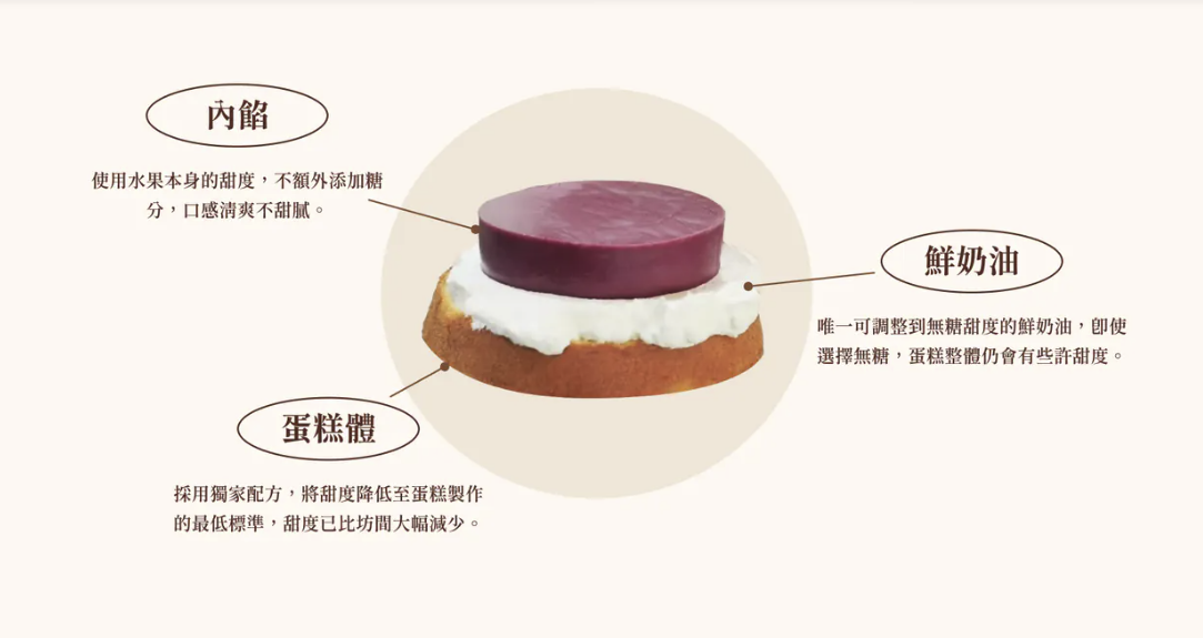 透過這樣的調整,蛋糕不會因為甜度過高而搶走水果本身的風味,反而能呈現出輕盈自然的水果香氣。